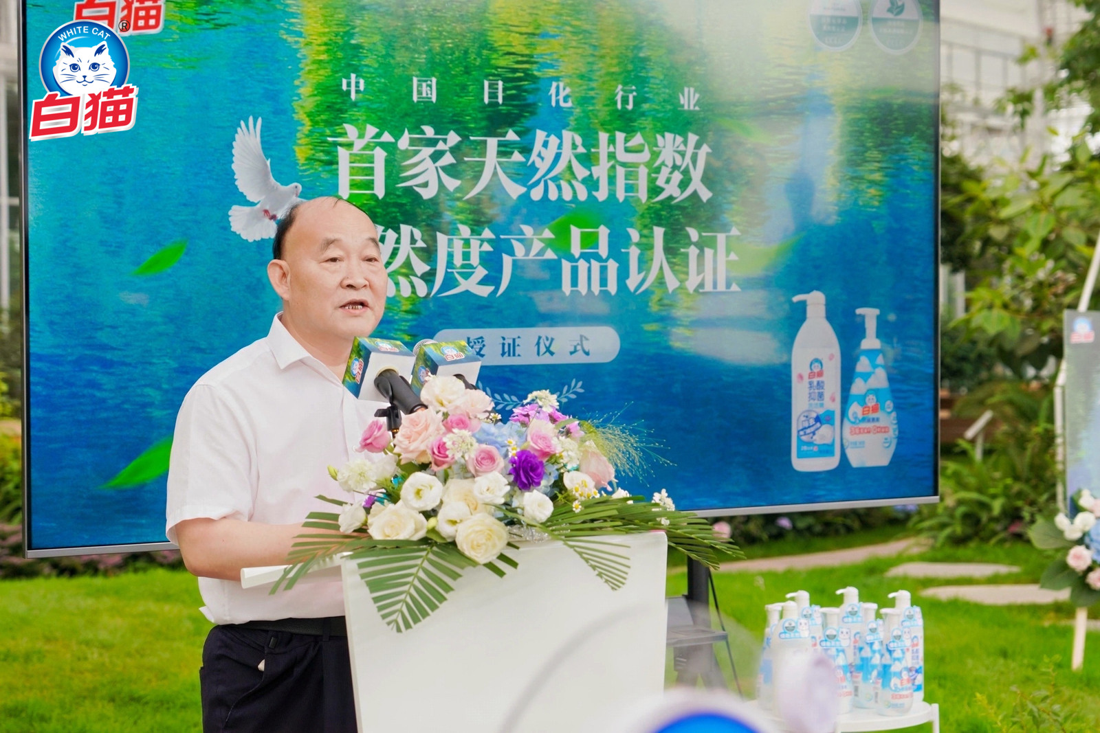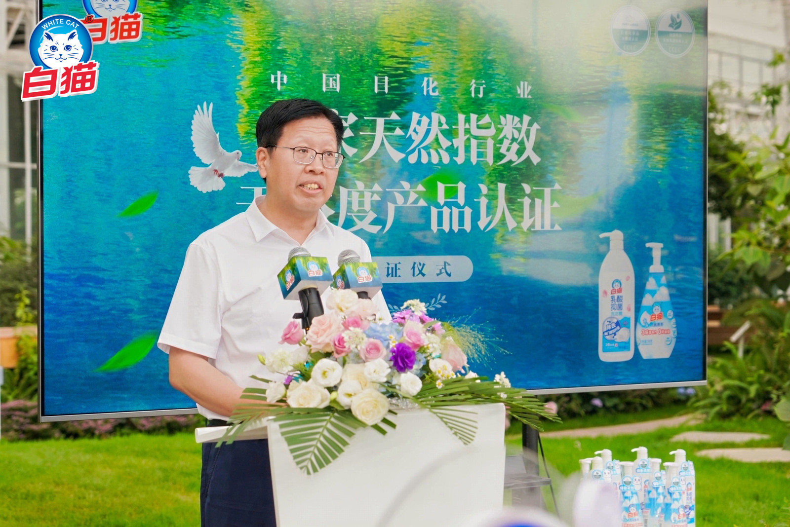 上海和黄白猫有限公司总经理李亚东在会上表示,此次关于日化产品“天然度”“天然指数”的认证意义非凡,是中轻联认证中心与中国日用化工协会在中国日化行业颁发的首个“天然”认证证书,填补了中国日化行业关于“天然产品”定义的空白,为中国日化行业向“绿色”“天然”的发展方向,制定了良好的标准与榜样,共同推进了中国洗涤用品迈向健康、环保新时代!